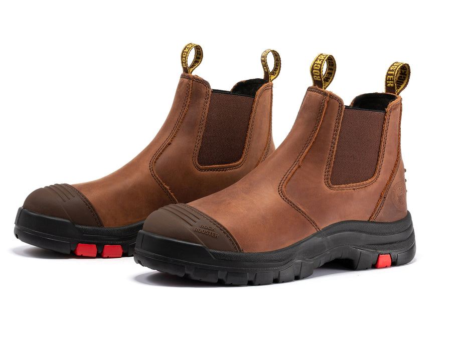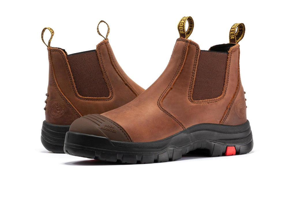 ROCKROOSTER Gammon Brown 6 inch Pull-on Steel Toe Leather Work Boots AK224ST